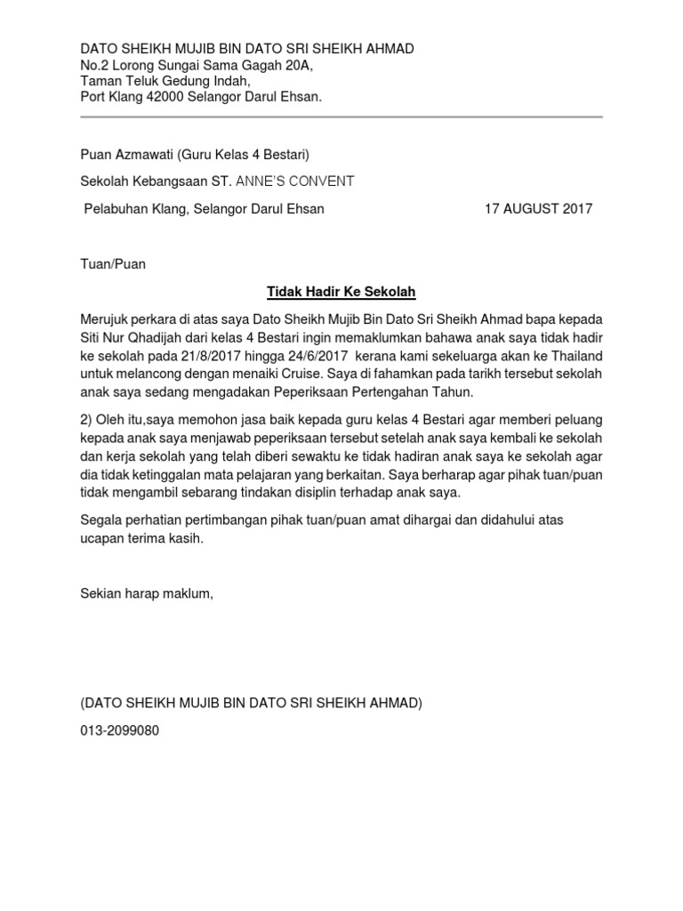 Panduan Lengkap 9 Contoh Tulis Surat Rasmi Tidak Hadir Ke Sekolah Mengikut Sebab Sis Hawa Blog Lifestyle Penuh Infomasi